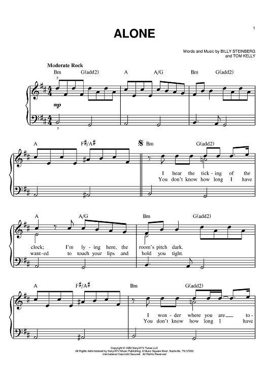 Digital Sheet Music for Alone by Heart, Billy Steinberg, Tom Kelly scored for Easy Piano; id:388899