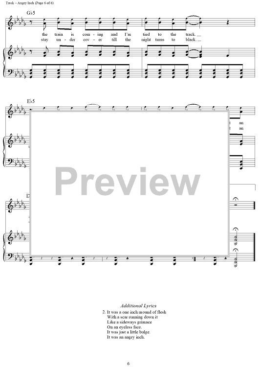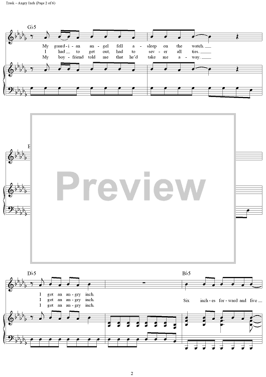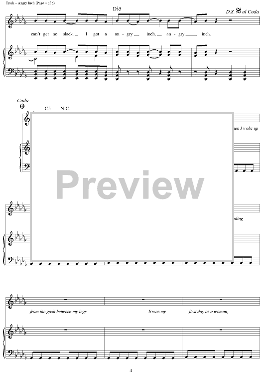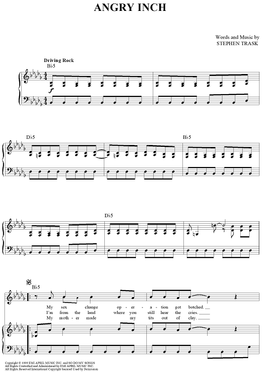 Digital Sheet Music for Angry Inch by Stephen Trask scored for Piano/Vocal/Chords; id:444510