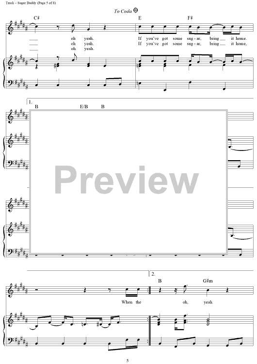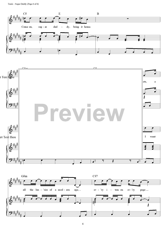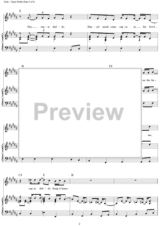 Digital Sheet Music for Sugar Daddy by Stephen Trask scored for Piano/Vocal/Chords; id:444514