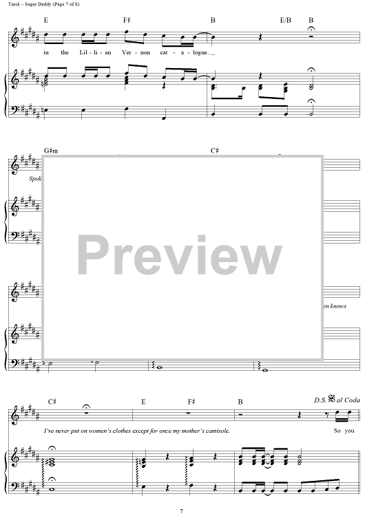 "Sugar Daddy" Sheet Music by Stephen Trask
