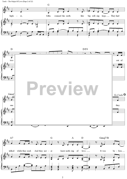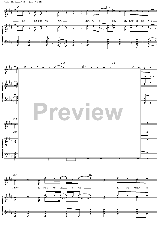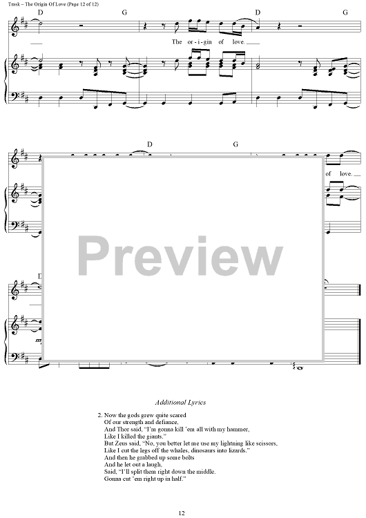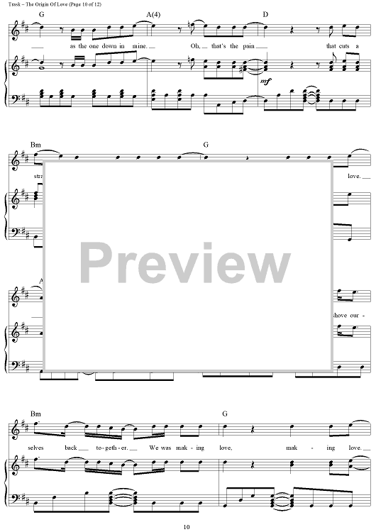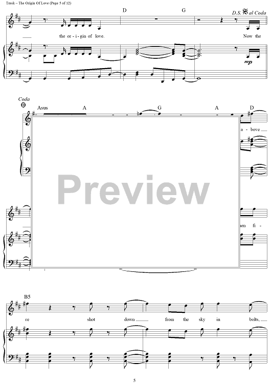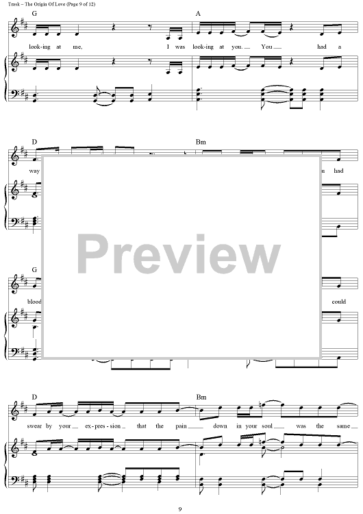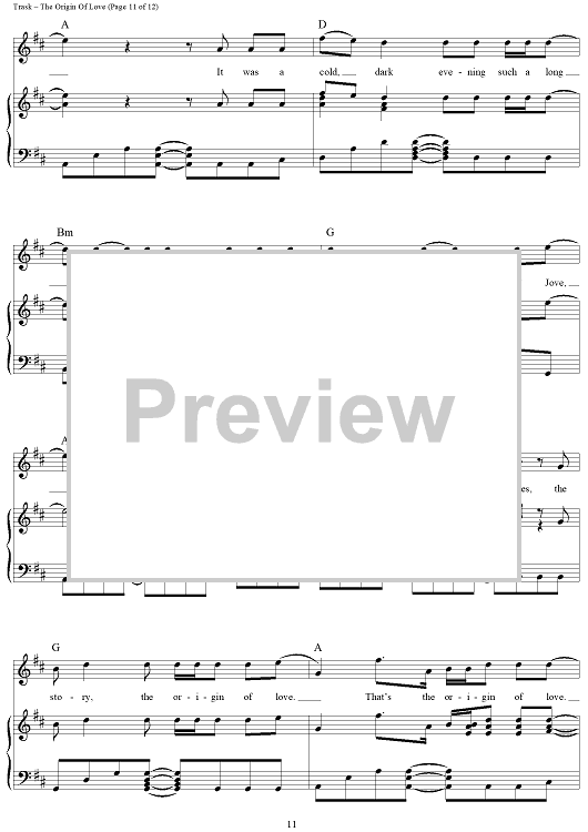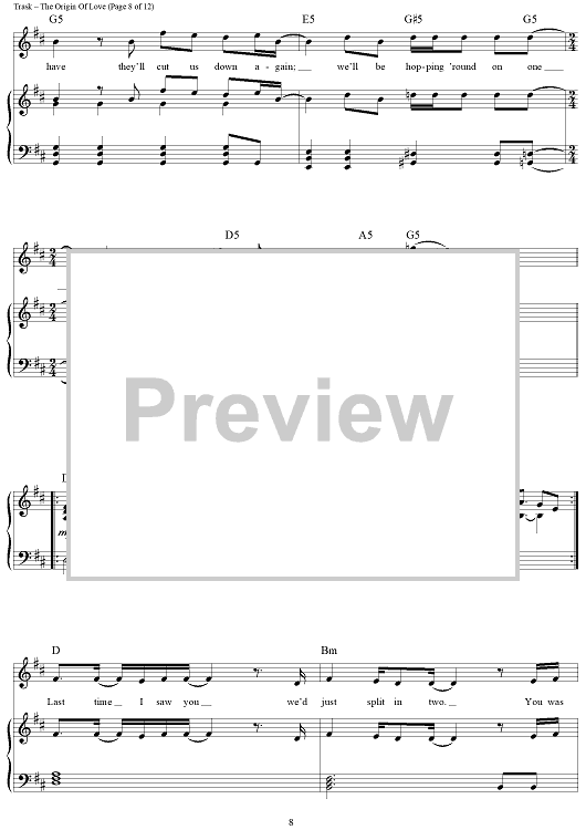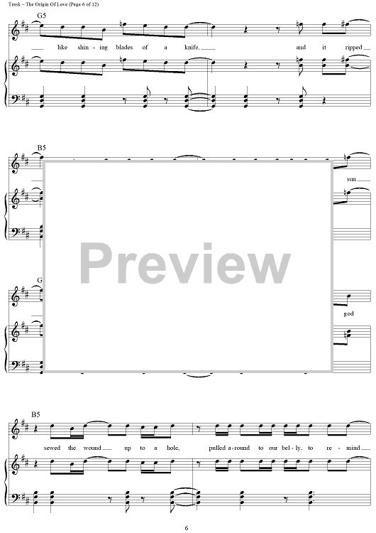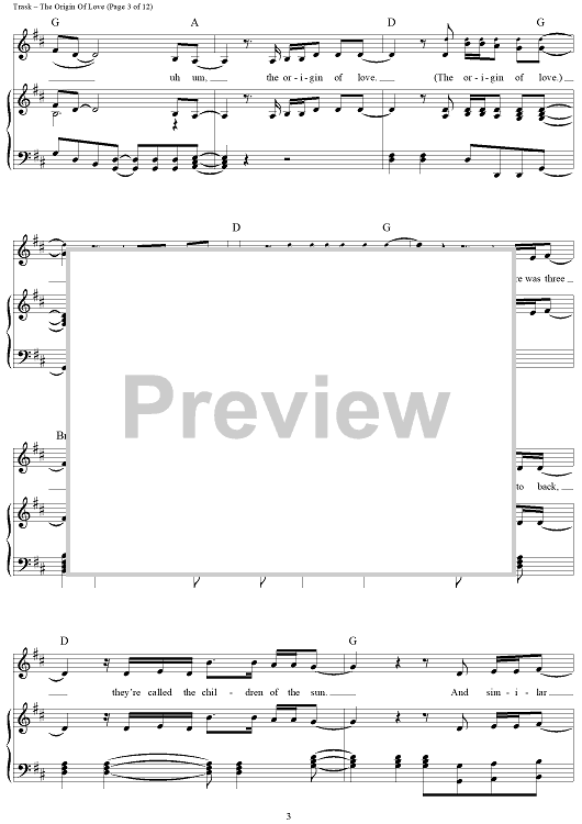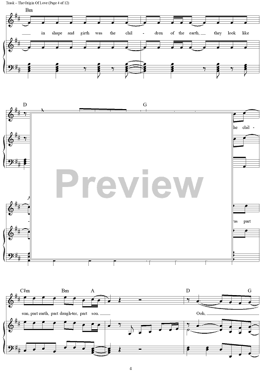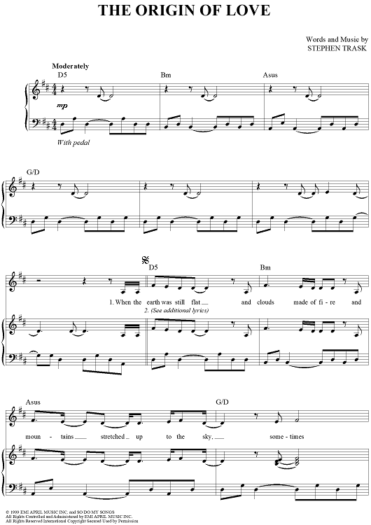 Digital Sheet Music for The Origin Of Love by Stephen Trask scored for Piano/Vocal/Chords; id:374562