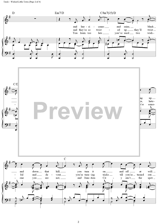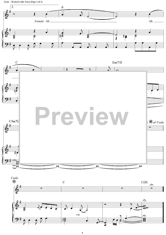 Digital Sheet Music for Wicked Little Town by Stephen Trask scored for Piano/Vocal/Chords; id:444519