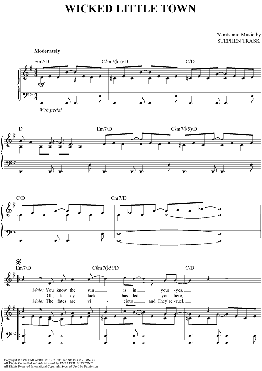 "Wicked Little Town" Sheet Music by Stephen Trask