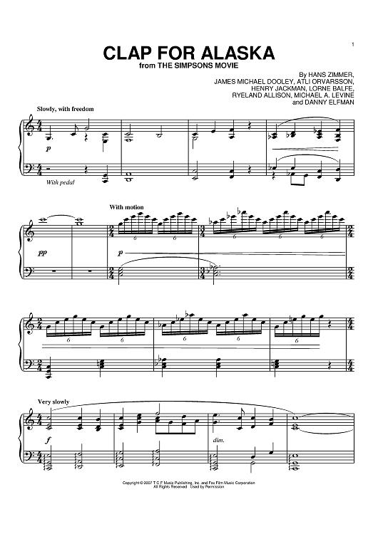 Digital Sheet Music for Clap for Alaska by Danny Elfman, Hans Zimmer, Henry Jackman, Ryeland Allison, Lorne Balfe, Jim Dooley, Michael A. Levine, Atli Orvarsson scored for Piano Solo; id:402358