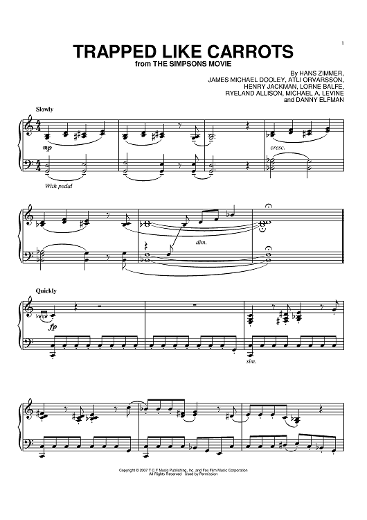 Digital Sheet Music for Trapped Like Carrots by Danny Elfman, Hans Zimmer, Henry Jackman, Ryeland Allison, Lorne Balfe, Jim Dooley, Michael A. Levine, Atli Orvarsson scored for Piano Solo; id:402356