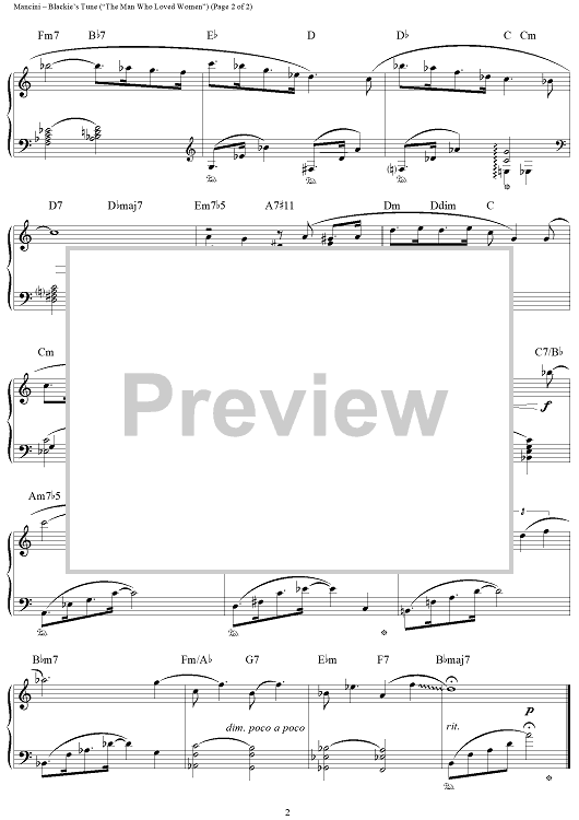 "Blackie's Tune" Sheet Music by Henry Mancini