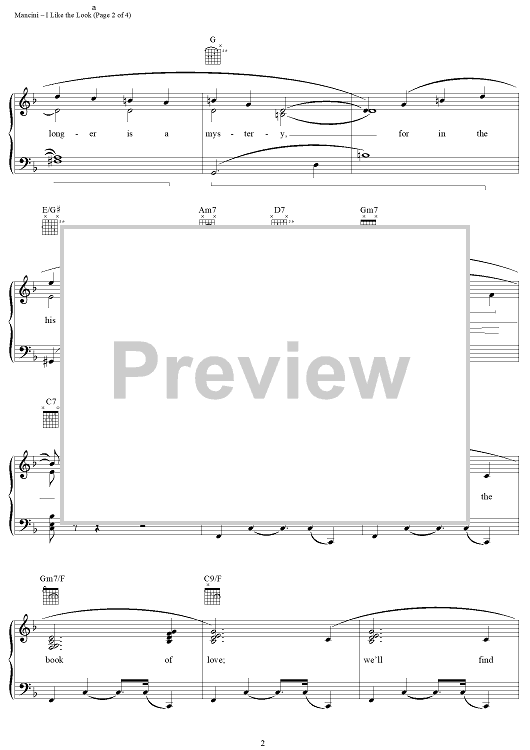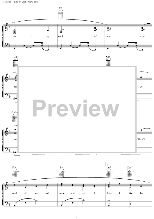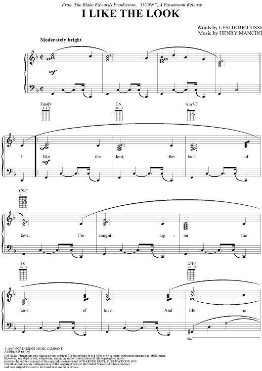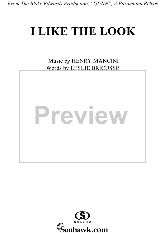 Digital Sheet Music for I Like the Look by Henry Mancini, Leslie Bricusse scored for Piano/Vocal/Chords; id:251331