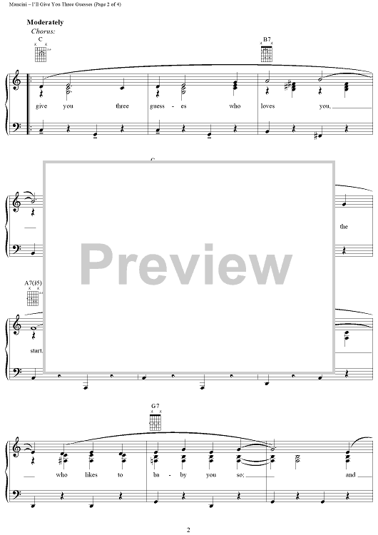 Digital Sheet Music for I'll Give You Three Guesses by Henry Mancini, Johnny Mercer scored for Piano/Vocal/Chords; id:154687