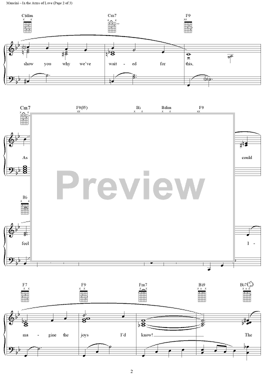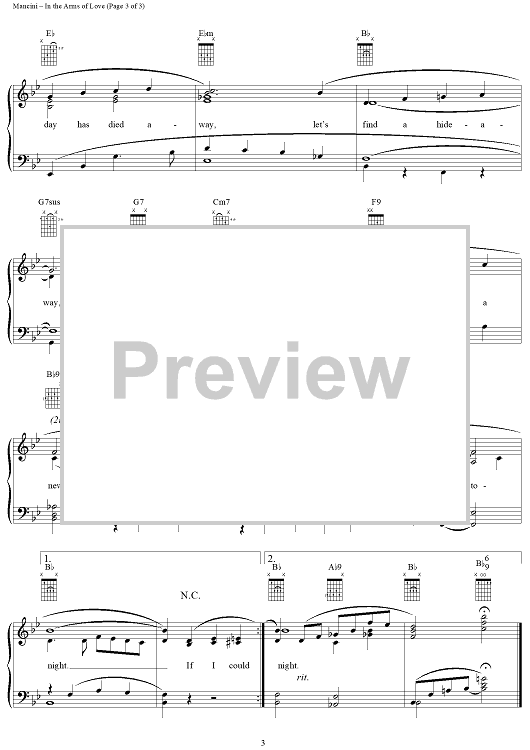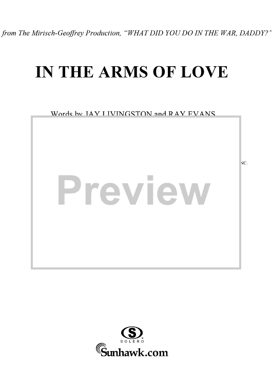 Digital Sheet Music for In the Arms of Love by Henry Mancini, Jay Livingston, Ray Evans scored for Piano/Vocal/Chords; id:151676