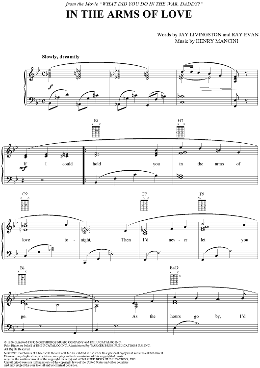 "In the Arms of Love" Sheet Music by Henry Mancini