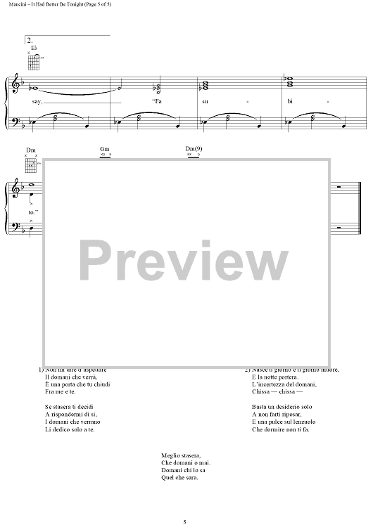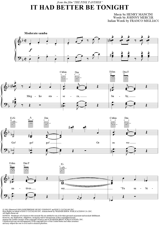 "It Had Better Be Tonight" Sheet Music by Henry Mancini
