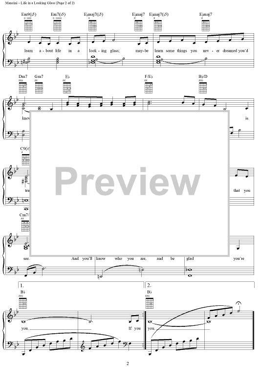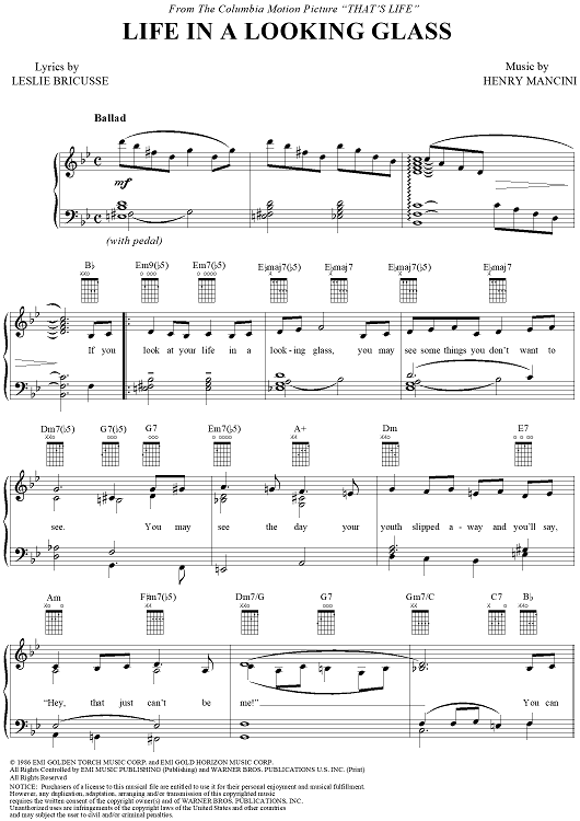 Digital Sheet Music for Life in a Looking Glass by Henry Mancini, Leslie Bricusse scored for Piano/Vocal/Chords; id:151685