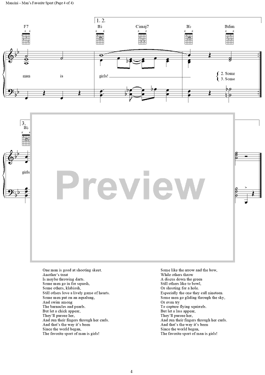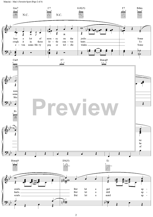 Digital Sheet Music for Man's Favorite Sport by Henry Mancini, Johnny Mercer scored for Piano/Vocal/Chords; id:236742