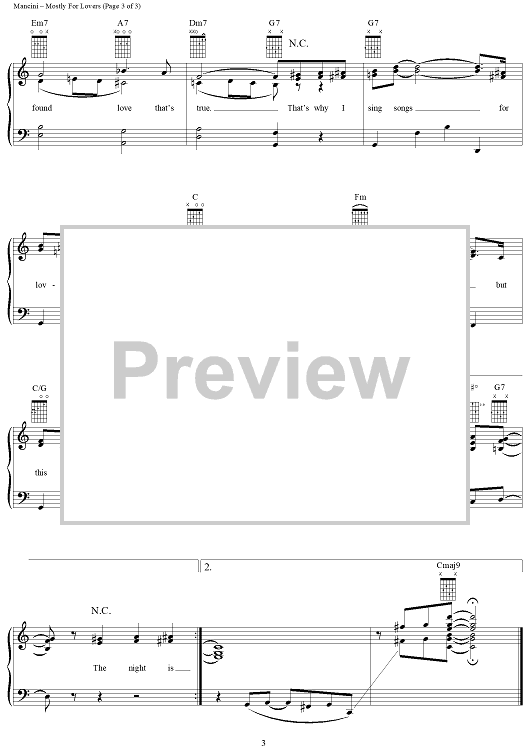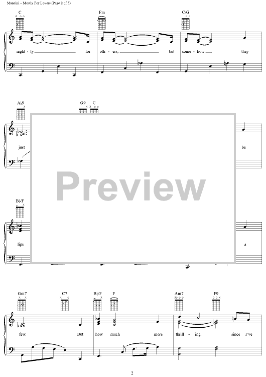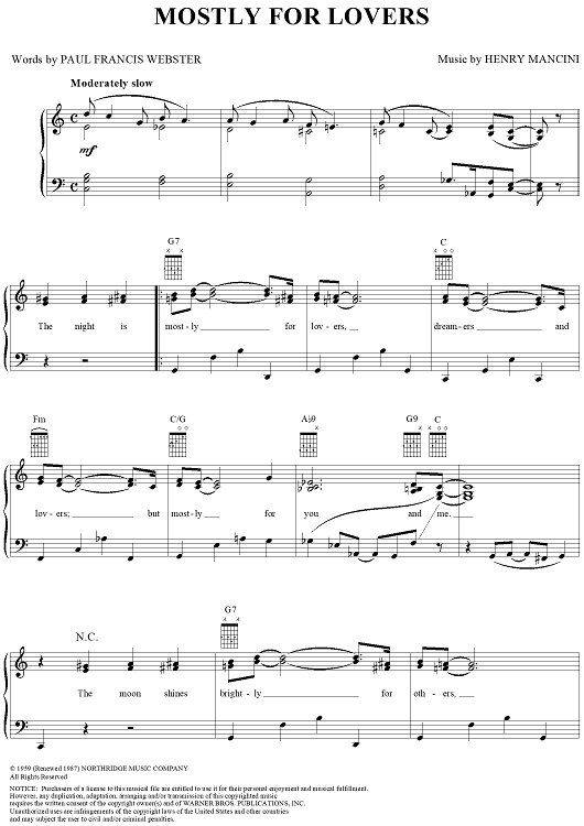 Digital Sheet Music for Mostly For Lovers by Henry Mancini, Paul Francis Webster scored for Piano/Vocal/Chords; id:120603