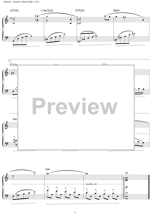 Digital Sheet Music for Natasha's Theme by Henry Mancini scored for Piano Solo; id:251550