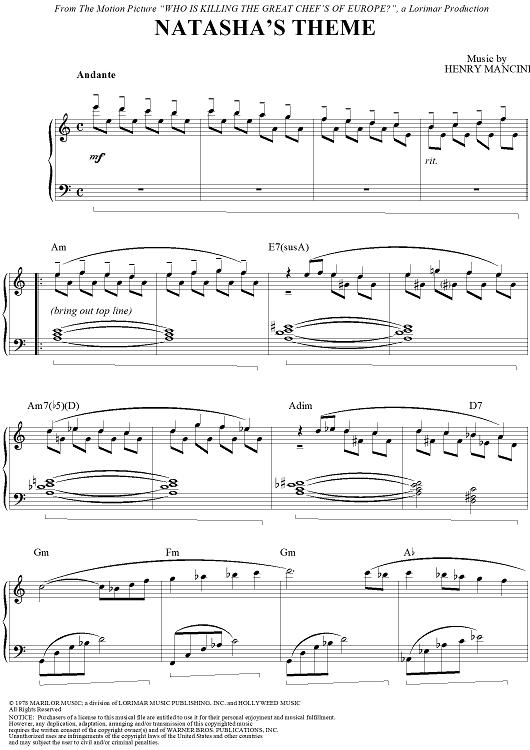 "Natasha's Theme" Sheet Music by Henry Mancini