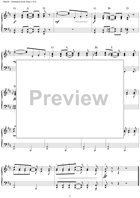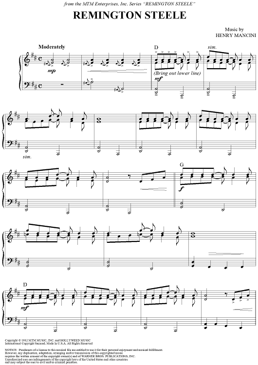 Digital Sheet Music for Remington Steele by Henry Mancini scored for Piano Solo; id:116376