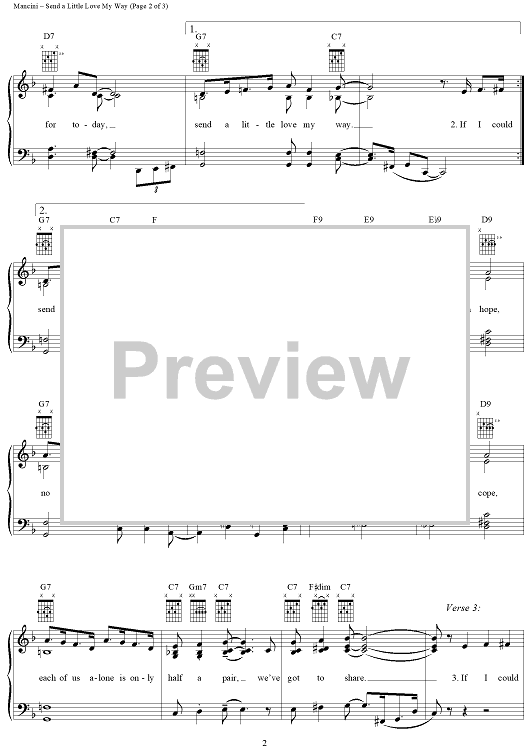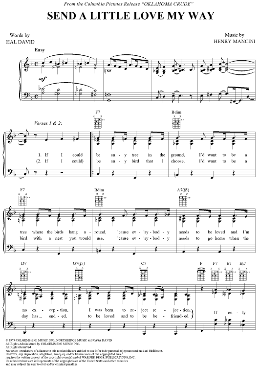 Digital Sheet Music for Send a Little Love My Way by Henry Mancini, Hal David scored for Piano/Vocal/Chords; id:251454