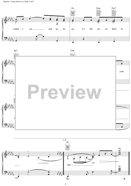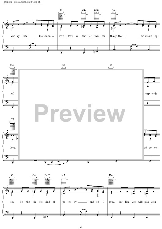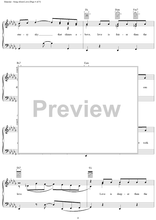 Digital Sheet Music for Song About Love by Henry Mancini, Al Stillman scored for Piano/Vocal/Chords; id:251450