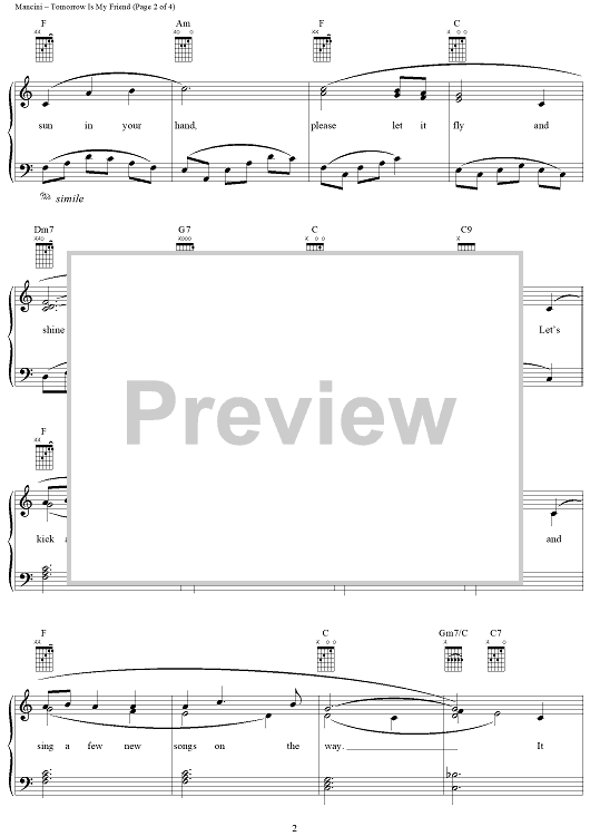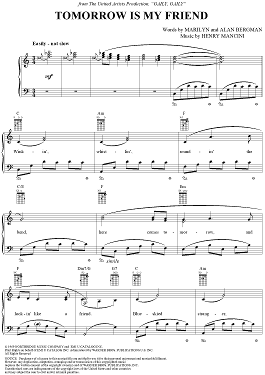 Digital Sheet Music for Tomorrow Is My Friend by Henry Mancini, Alan Bergman, Marilyn Bergman scored for Piano/Vocal/Chords; id:251496