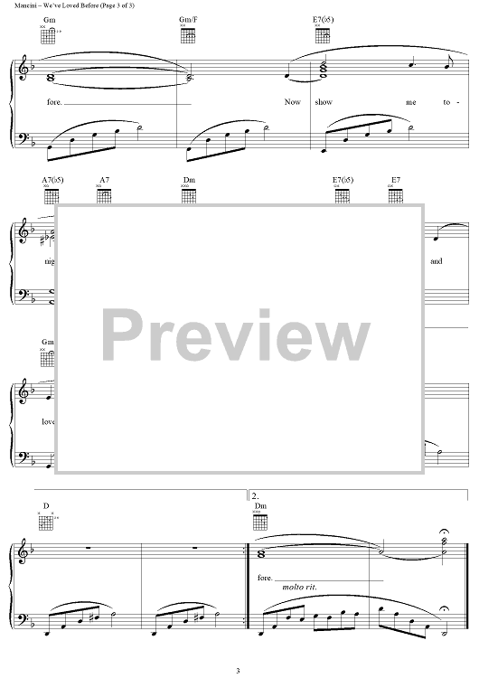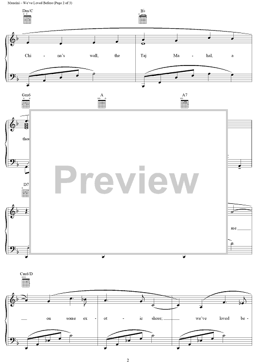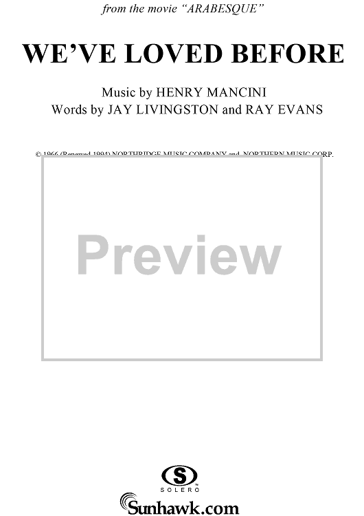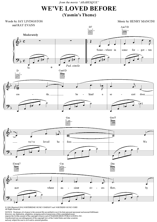 Digital Sheet Music for We've Loved Before (Yasmin's Theme) by Henry Mancini, Jay Livingston, Ray Evans scored for Piano/Vocal/Chords; id:251518
