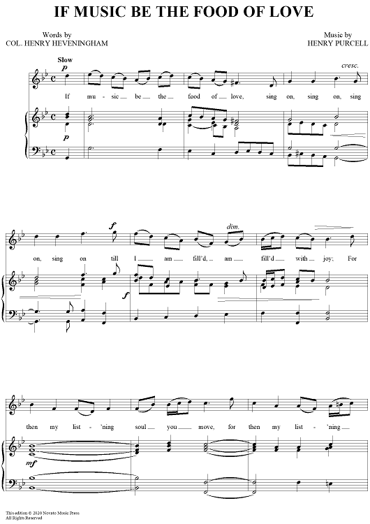 Digital Sheet Music for If Music be The Food Of Love by Henry Purcell, Col. Henry Heveningham scored for Voice/Piano; id:468171