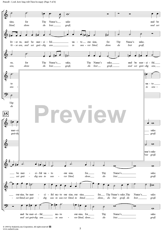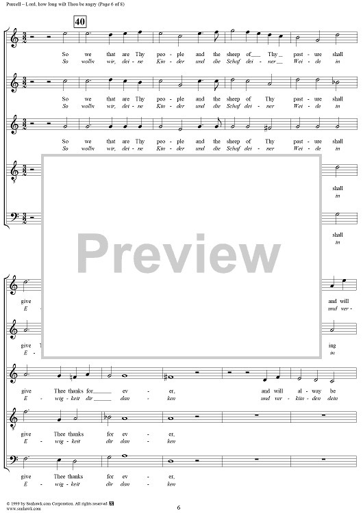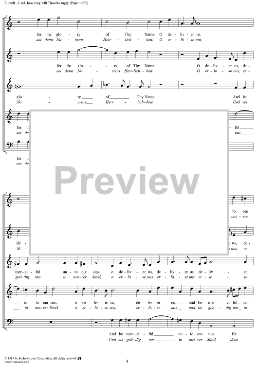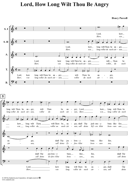 Digital Sheet Music for Lord, How Long Wilt Thou Be Angry by Henry Purcell scored for Four-part Mixed Chorus; id:254901