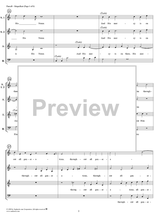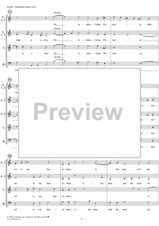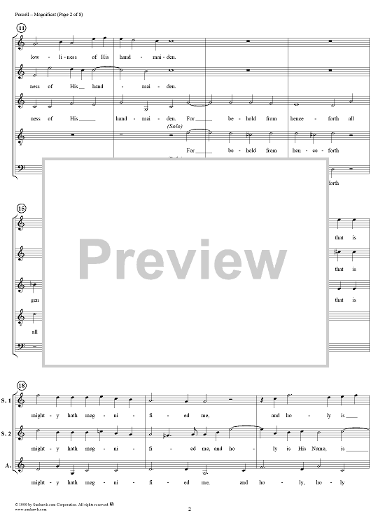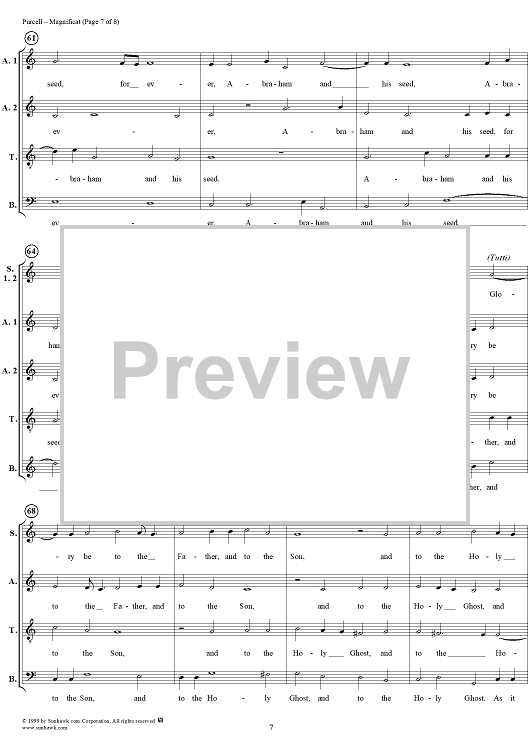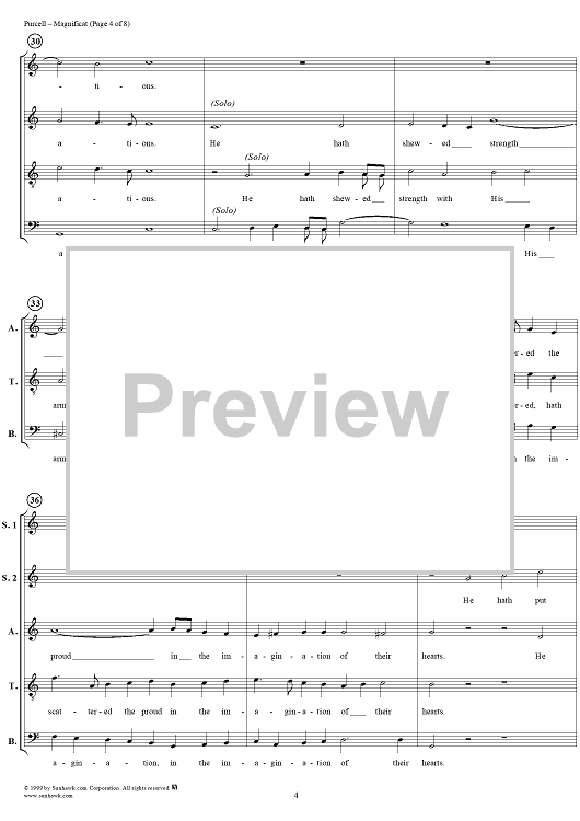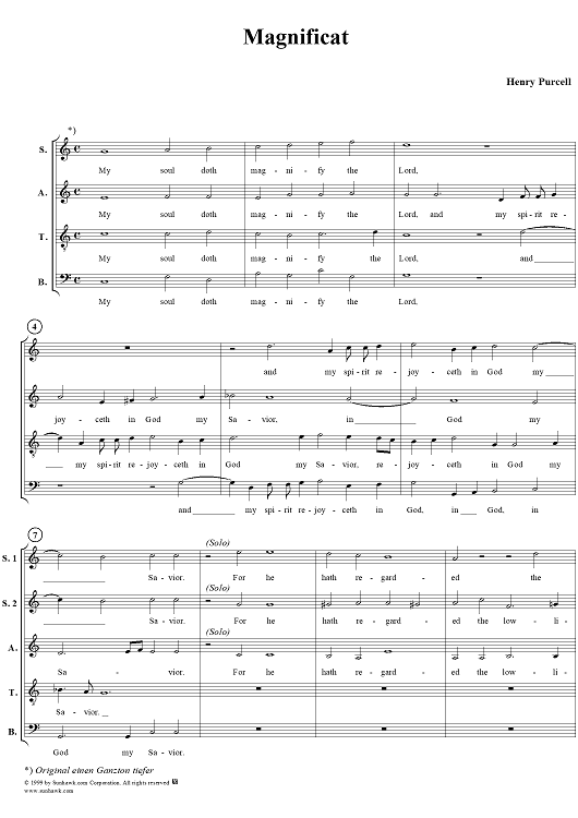 Digital Sheet Music for Magnificat by Henry Purcell scored for Four-part Mixed Chorus; id:254878
