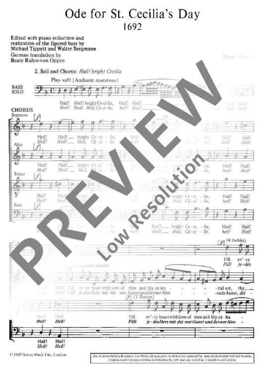 Digital Sheet Music for Ode for St. Cecilia's Day 1692 - Choral Score by Henry Purcell scored for Mixed Choir (satb), Soloists (saatbb) And Orchestra; id:474168