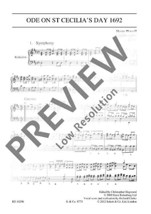 "Ode on St. Cecilia's Day 1692 Z 328 - Piano Reduction" Sheet Music by Henry Purcell