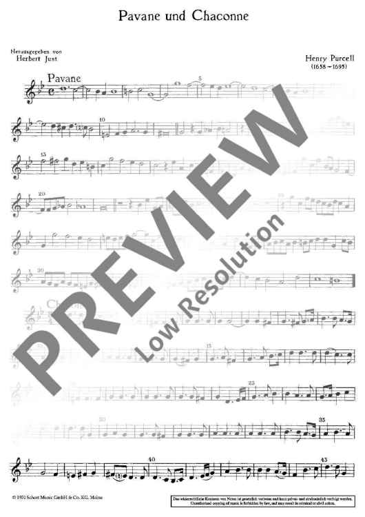 "Pavane and Chaconne in G minor - Violin II" Sheet Music by Henry Purcell