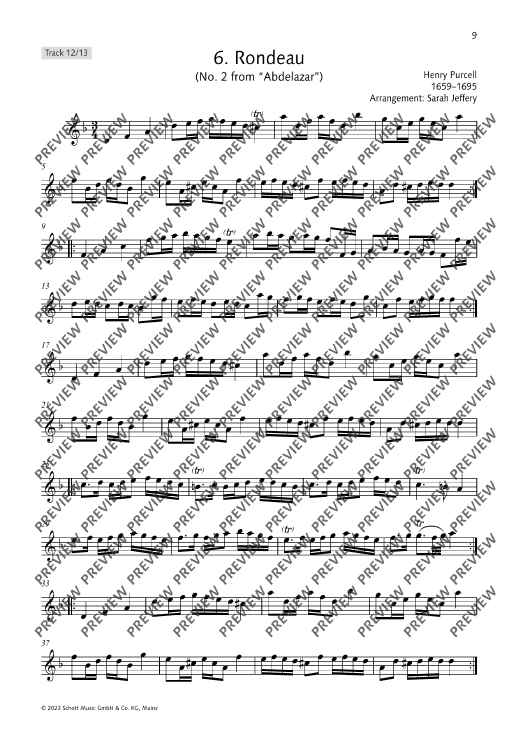 Digital Sheet Music for Rondeau by Henry Purcell, Sarah Jeffery scored for Sopranorecorder (tenorrecorder) And Piano; id:500194