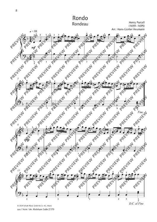 Digital Sheet Music for Rondeau by Henry Purcell, Hans-Guenter Heumann scored for Piano; id:504137