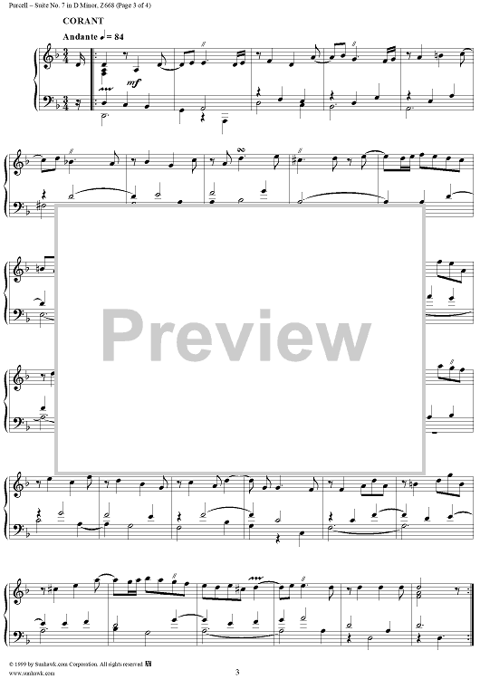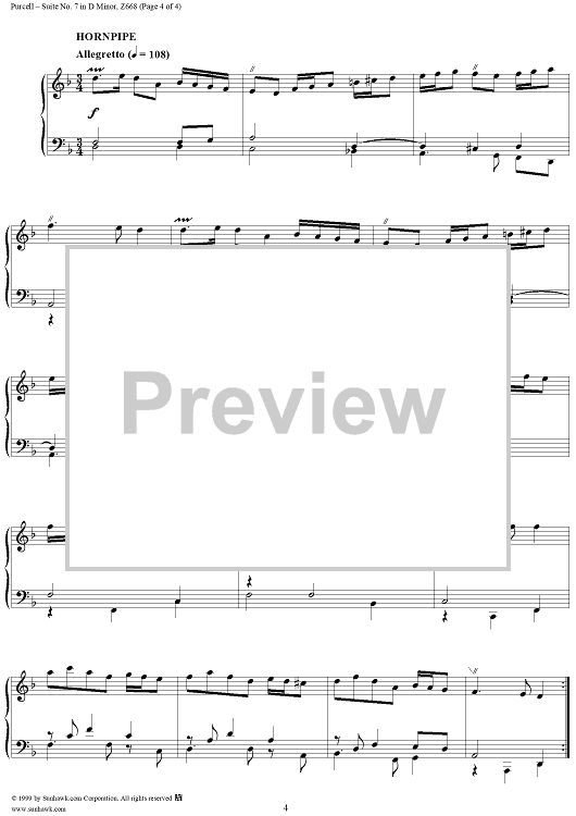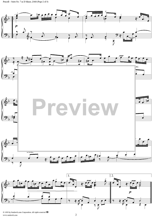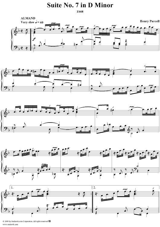 Digital Sheet Music for Suite No. 7 in D Minor by Henry Purcell scored for Piano Solo; id:255045