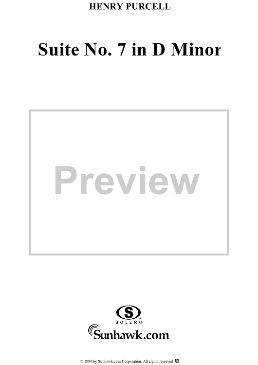 "Suite No. 7 in D Minor" Sheet Music by Henry Purcell