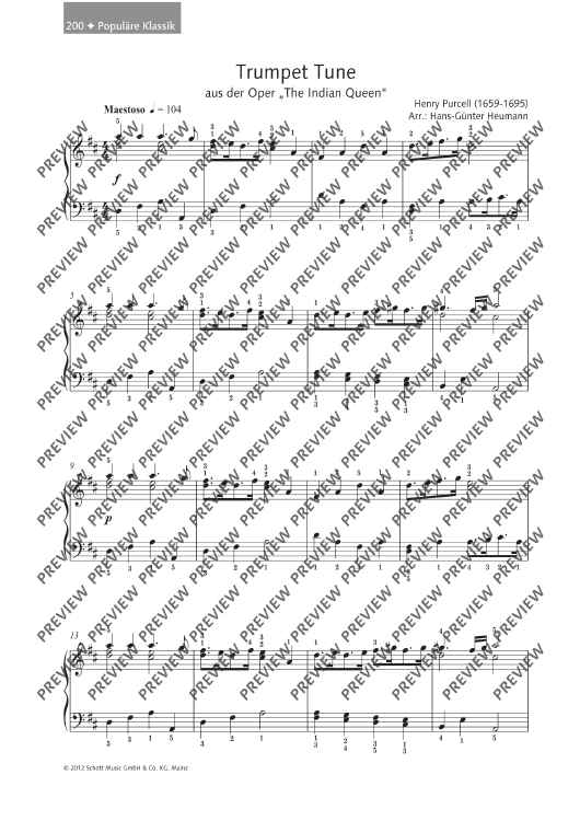 Digital Sheet Music for Trumpet Tune by Henry Purcell, Hans-Guenter Heumann scored for Piano; id:499394