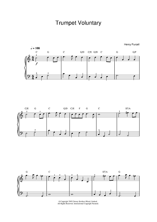 Digital Sheet Music for Trumpet Voluntary by Henry Purcell scored for Piano/Vocal/Chords; id:388722