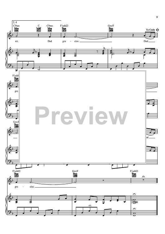 Digital Sheet Music for Dad Gracias (Give Thanks) by Henry Smith scored for Piano/Vocal/Chords; id:387064