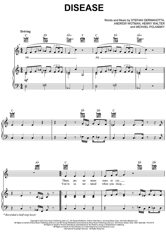 "Disease" is a song by American singer and songwriter Lady Gaga. It was released as the lead single from her upcoming eighth studio album, 'Mayhem', on October 25, 2024