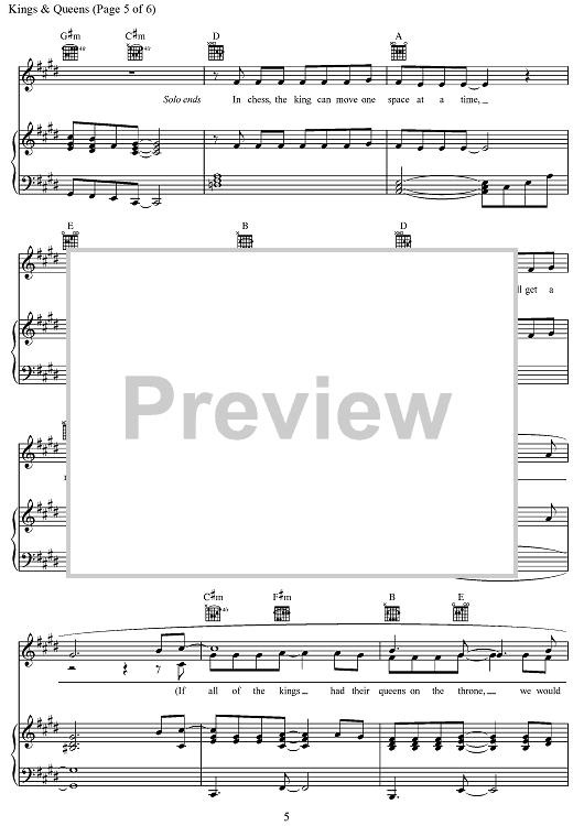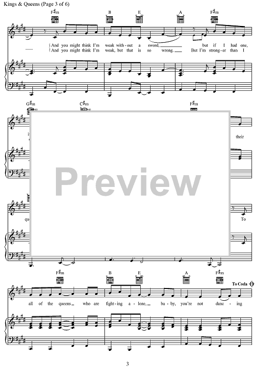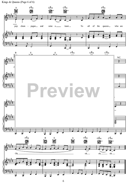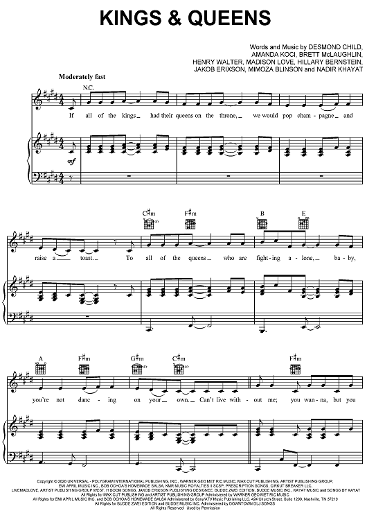 Digital Sheet Music for Kings & Queens by Desmond Child, Nadir Khayat, Henry Walter, Brett McLaughlin, Madison Love, Ava Max, Amanda Koci scored for Piano/Vocal/Chords; id:468506