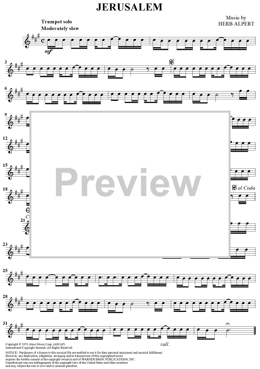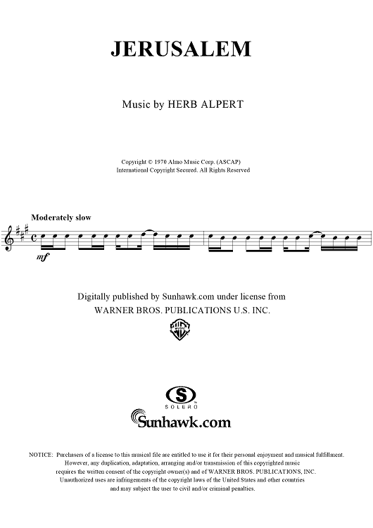 "Jerusalem - Trumpet in B-flat" Sheet Music by Herb Alpert