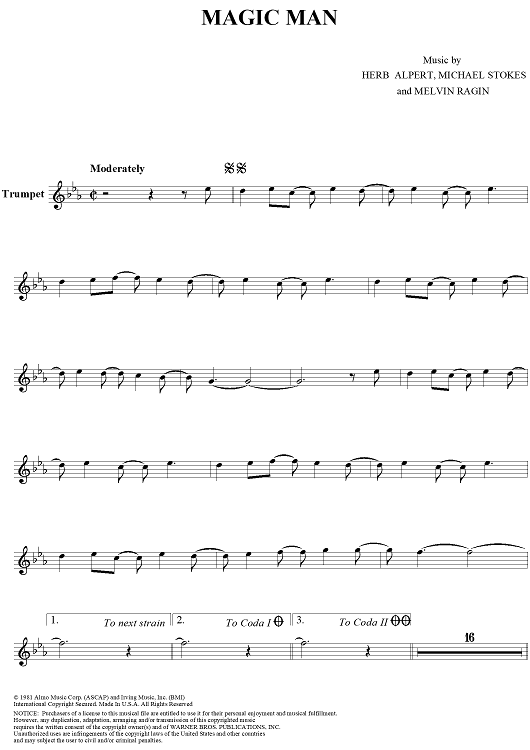 Digital Sheet Music for Magic Man - Trumpet in B-flat by Herb Alpert, Michael Stokes, Melvin Ragin scored for Trumpet/Piano; id:277859