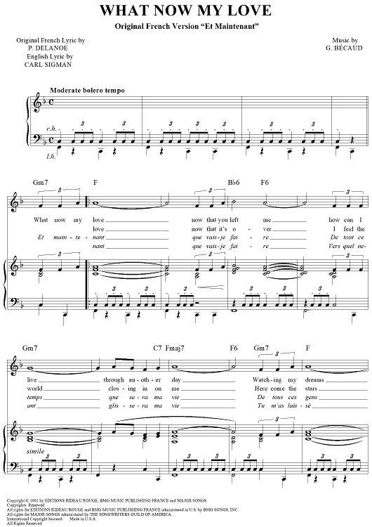 Digital Sheet Music for What Now My Love by Frank Sinatra, Carl Sigman, Gilbert Becaud, Herb Alpert, Sonny & Cher, Pierre Delanoë scored for Piano/Vocal/Chords; id:112655