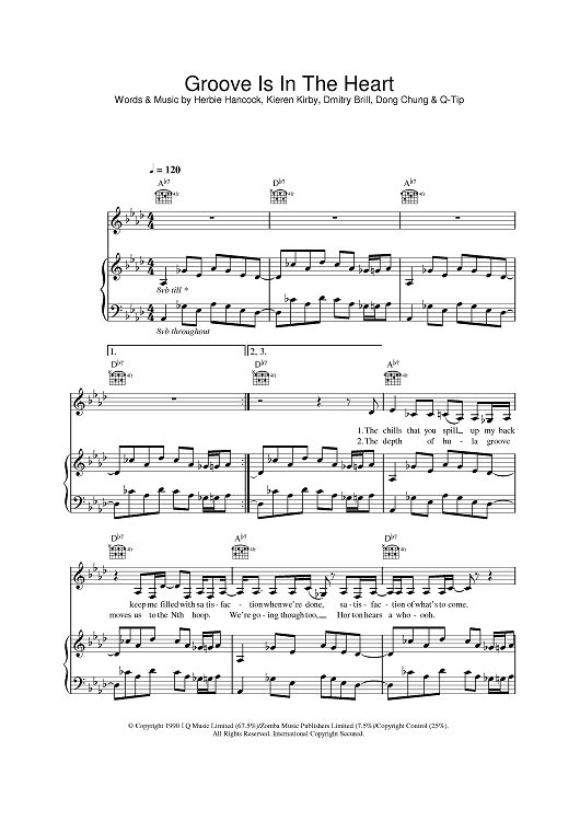 Digital Sheet Music for Groove Is In The Heart by Herbie Hancock, Dmitry Brill, Dong Chung, Deee-Lite, Kieren Kirby, Q-Tip scored for Piano/Vocal/Chords; id:397687