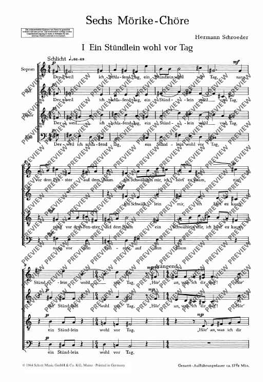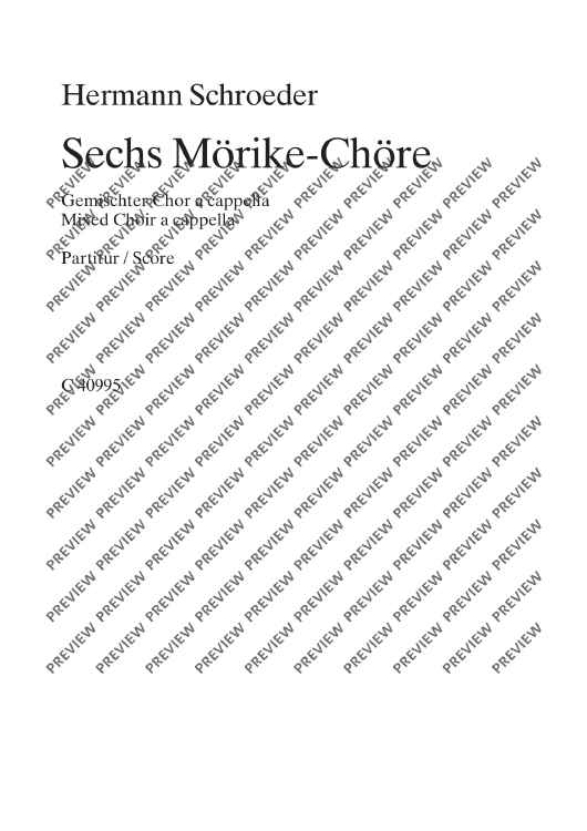 Digital Sheet Music for Sechs Mörike-Chöre - Choral Score by Hermann Schroeder scored for Mixed Choir (satb); id:479444