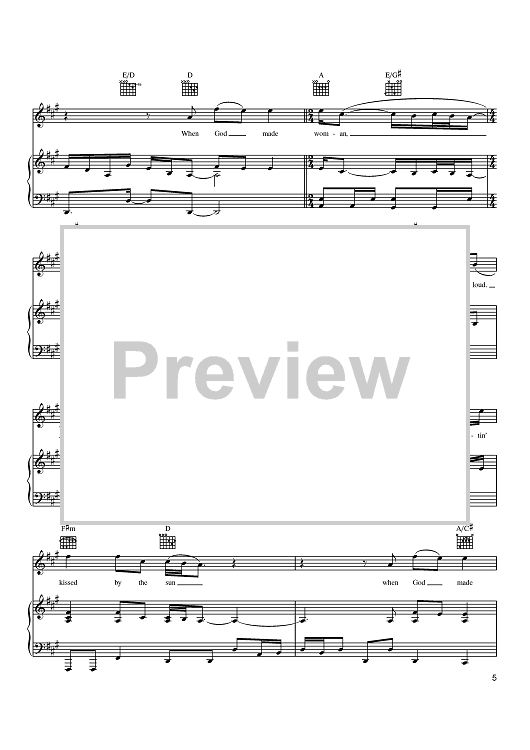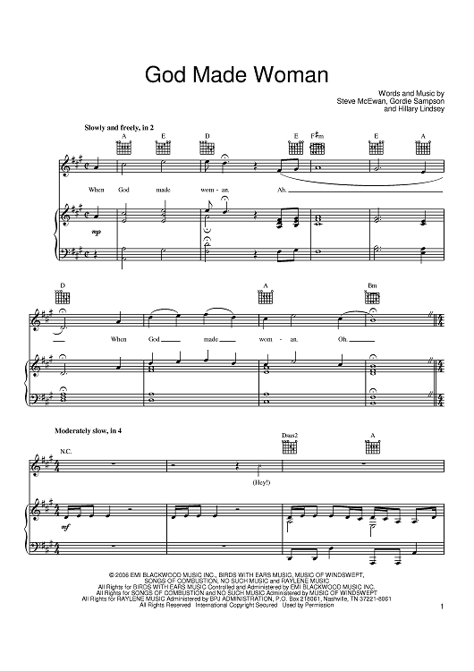 Digital Sheet Music for God Made Woman by Steve McEwan, Hillary Lindsey, Gordie Sampson, Keith Urban scored for Piano/Vocal/Chords; id:399122