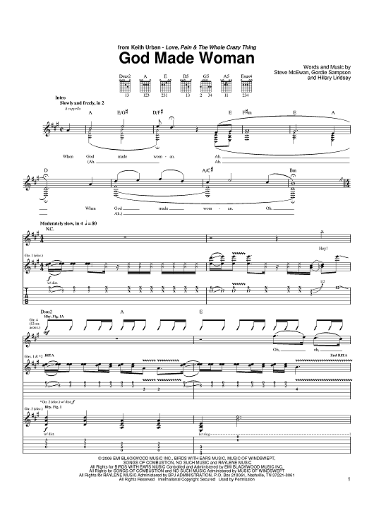 Digital Sheet Music for God Made Woman by Steve McEwan, Hillary Lindsey, Gordie Sampson, Keith Urban scored for Guitar Tab; id:399386