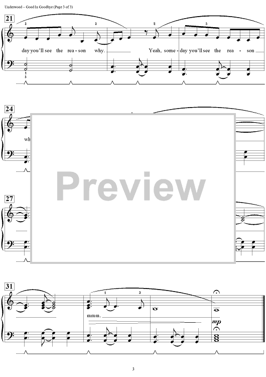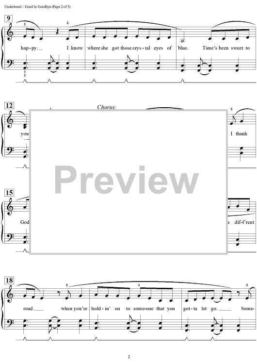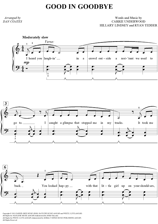 Digital Sheet Music for Good In Goodbye by Dan Coates, Hillary Lindsey, Ryan Tedder, Carrie Underwood scored for Piano; id:458336