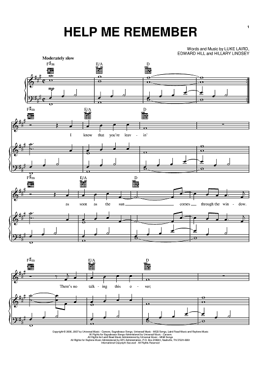 Digital Sheet Music for Help Me Remember by Edward Hill, Rascal Flatts, Hillary Lindsey, Luke Laird scored for Piano/Vocal/Chords; id:402762
