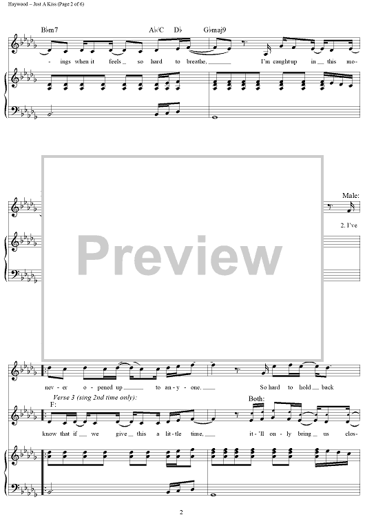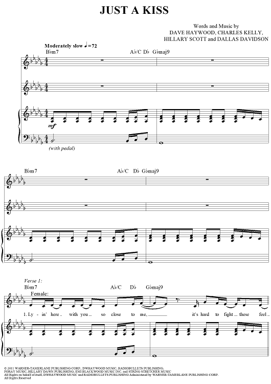 Digital Sheet Music for Just A Kiss by Dallas Davidson, Hillary Scott, Lady Antebellum, Charles Kelley, Dave Haywood scored for Piano/Vocal/Chords; id:421093